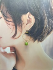 ゴールドリングの下で揺れるマスカットカラーのガラスは程良い重量感があります。