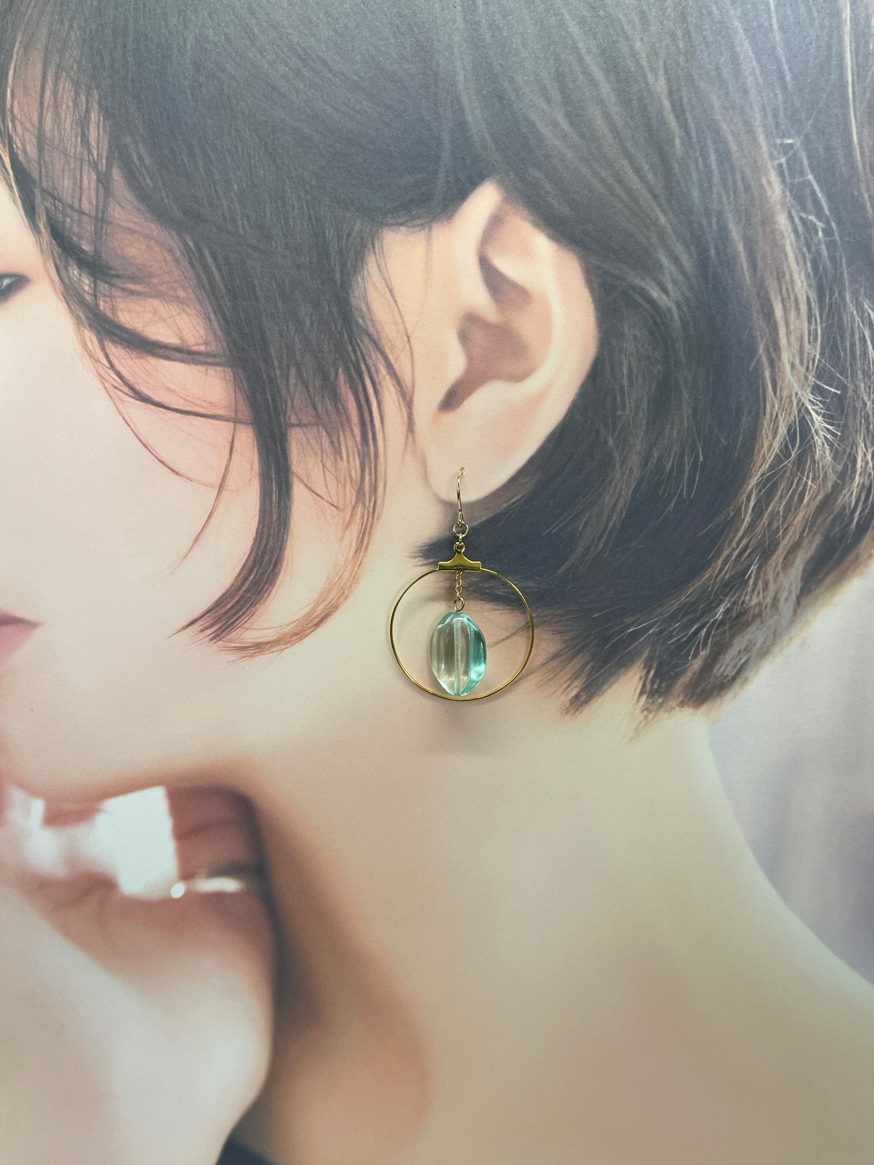 雫のようなベネチアンガラスがリングの中でキラキラ揺れるピアスです。