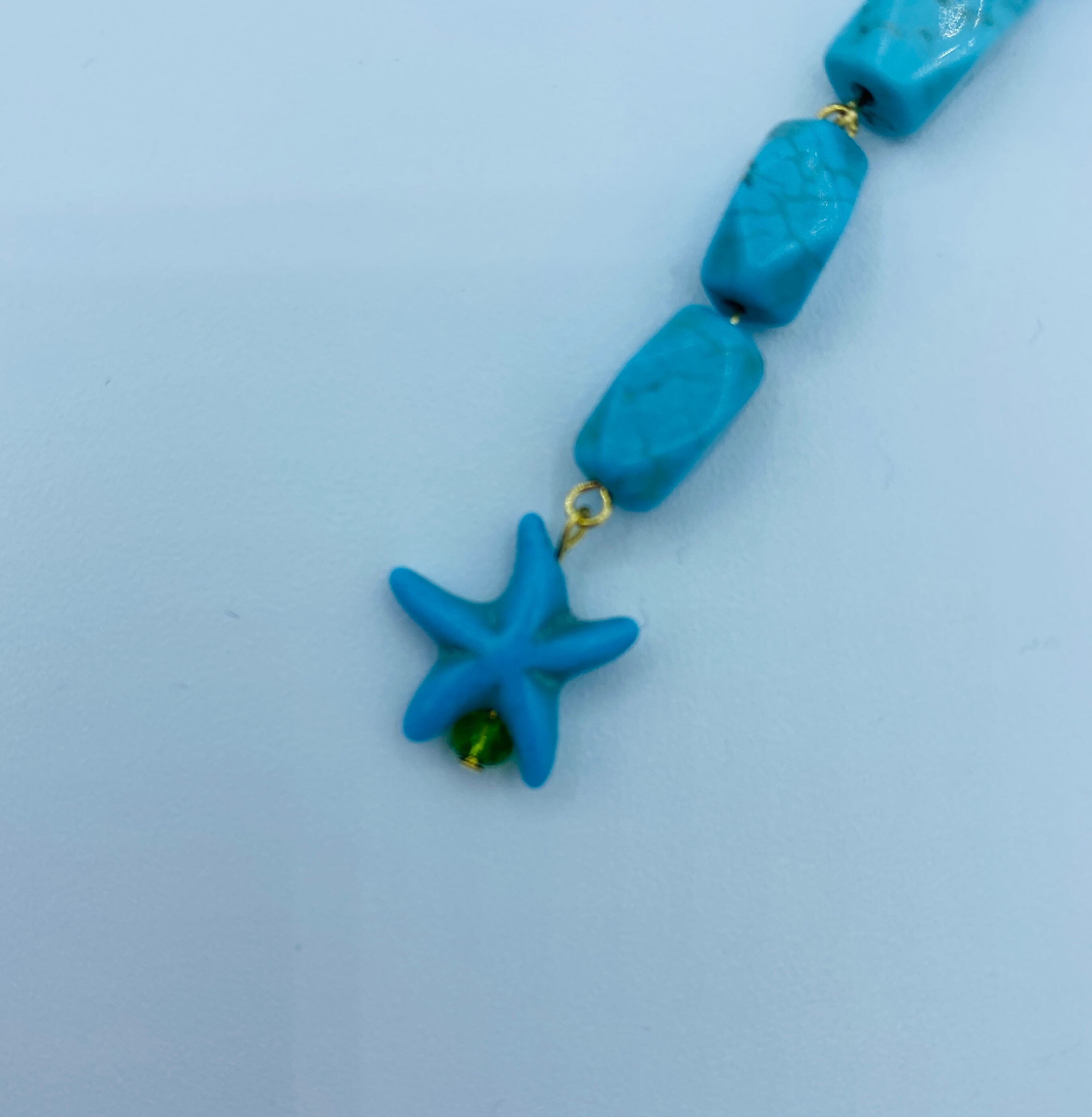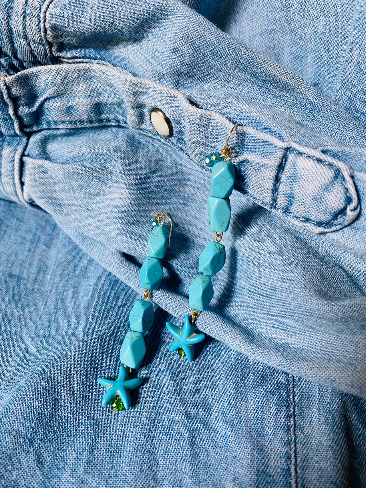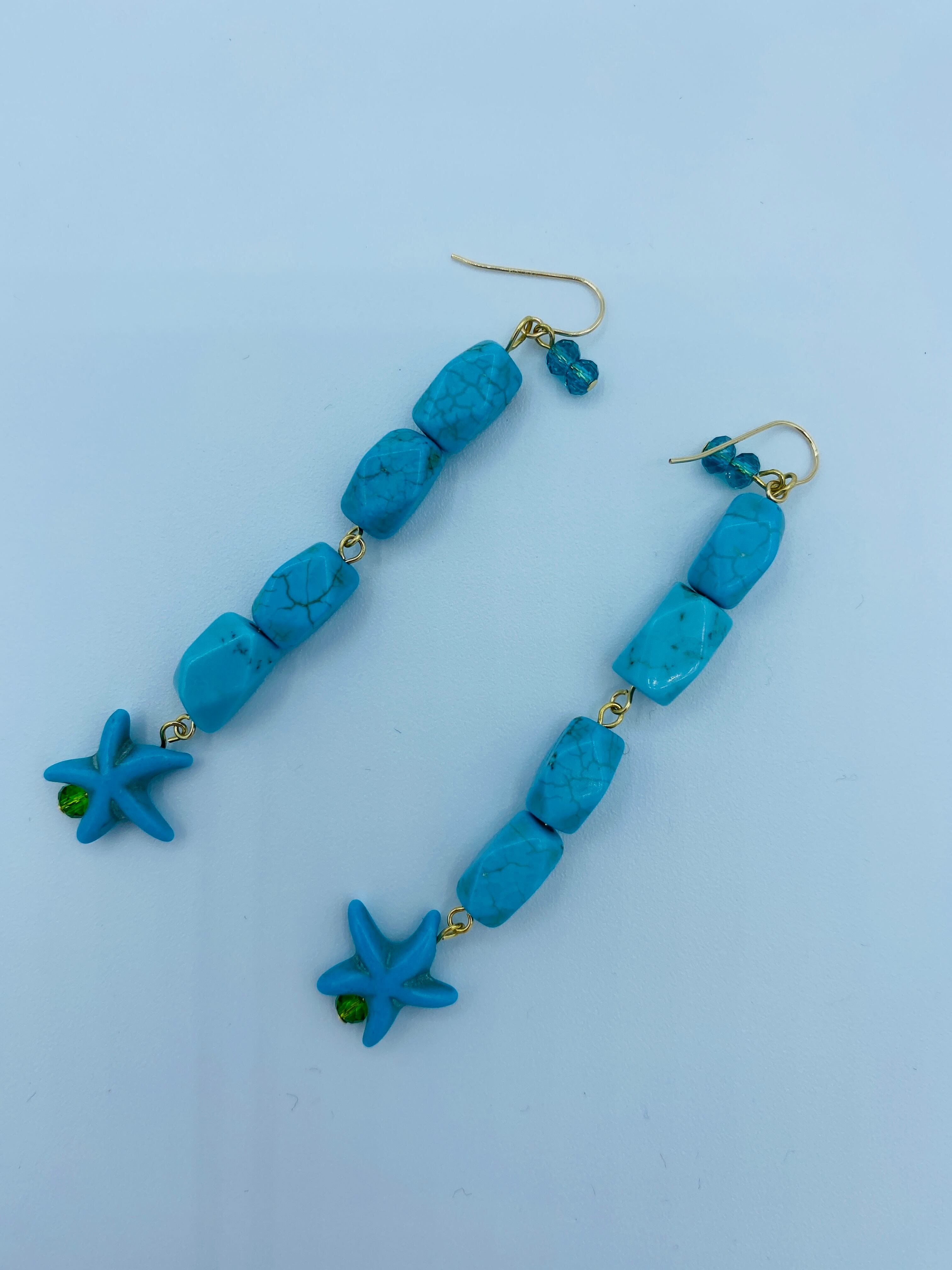 ヒトデの形のトルコ石を使って、存在感いっぱいのピアスです。